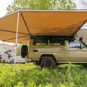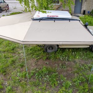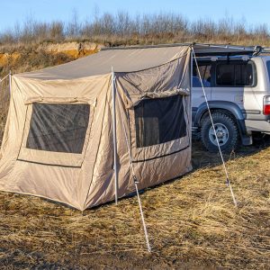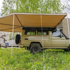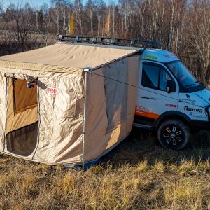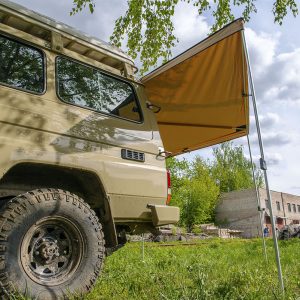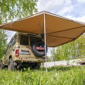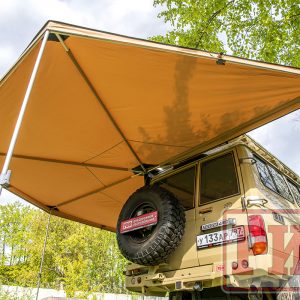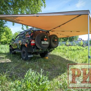 Описание Комбинированный автомобильный тент-маркиза размером 2.5 х 2.0 метра. Жестко крепится к кузову автомобиля или автомобильному багажнику, удобно и быстро разворачивается в походное положение. Отлично защищает от прямых солнечных лучей…