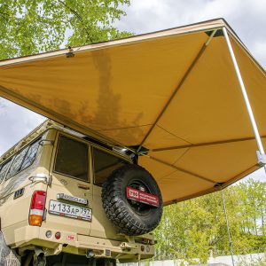 Описание Веерный автомобильный тент-маркиза размером 2,5 на 2,5 метра (старый номер WIN201-1). Жестко крепится к кузову автомобиля или автомобильному багажнику, удобно и быстро разворачивается в походное положение. Отлично защищает от…