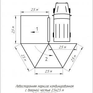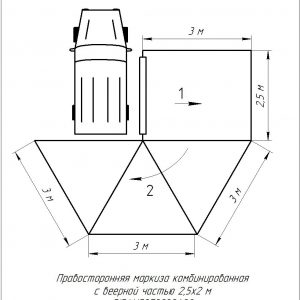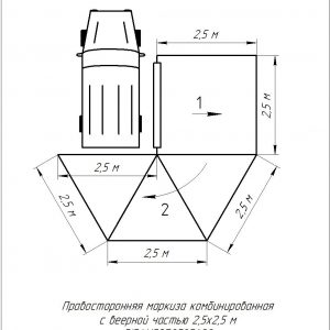 Описание Маркиза автомобильная РИФ комбинированная (прямоугольная с веерной частью) 2,5 м (правая) Особенности и характеристики. Размер прямоугольной части: 2,5х2,5 м. Радиус раскладки веерной части 2,5 м на правую сторону автомобиля…